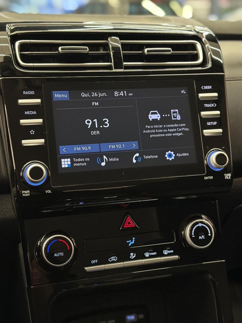 Tem ar-condicionado automático, rodas de liga leve, sensor de estacionamento traseiro, chave presencial, volante em couro e multimídia completa, excelente conforto e conveniência no dia a dia